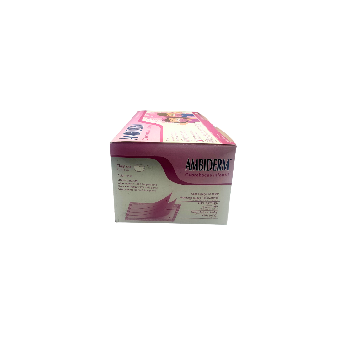 Caja con 50 cubhttps://bacmedical.mx/wp-admin/post.php?post=2341&action=editrebocas para niños de marca Ambiderm de calidad premium y certificados de triple capa de tela SMS de 75 gramos de color rosa con ajuste nasal. El precio incluye impuestos, si requieres factura envía un correo a ventas@bacmedical.com.mx con el numero de la venta de tu pedido.