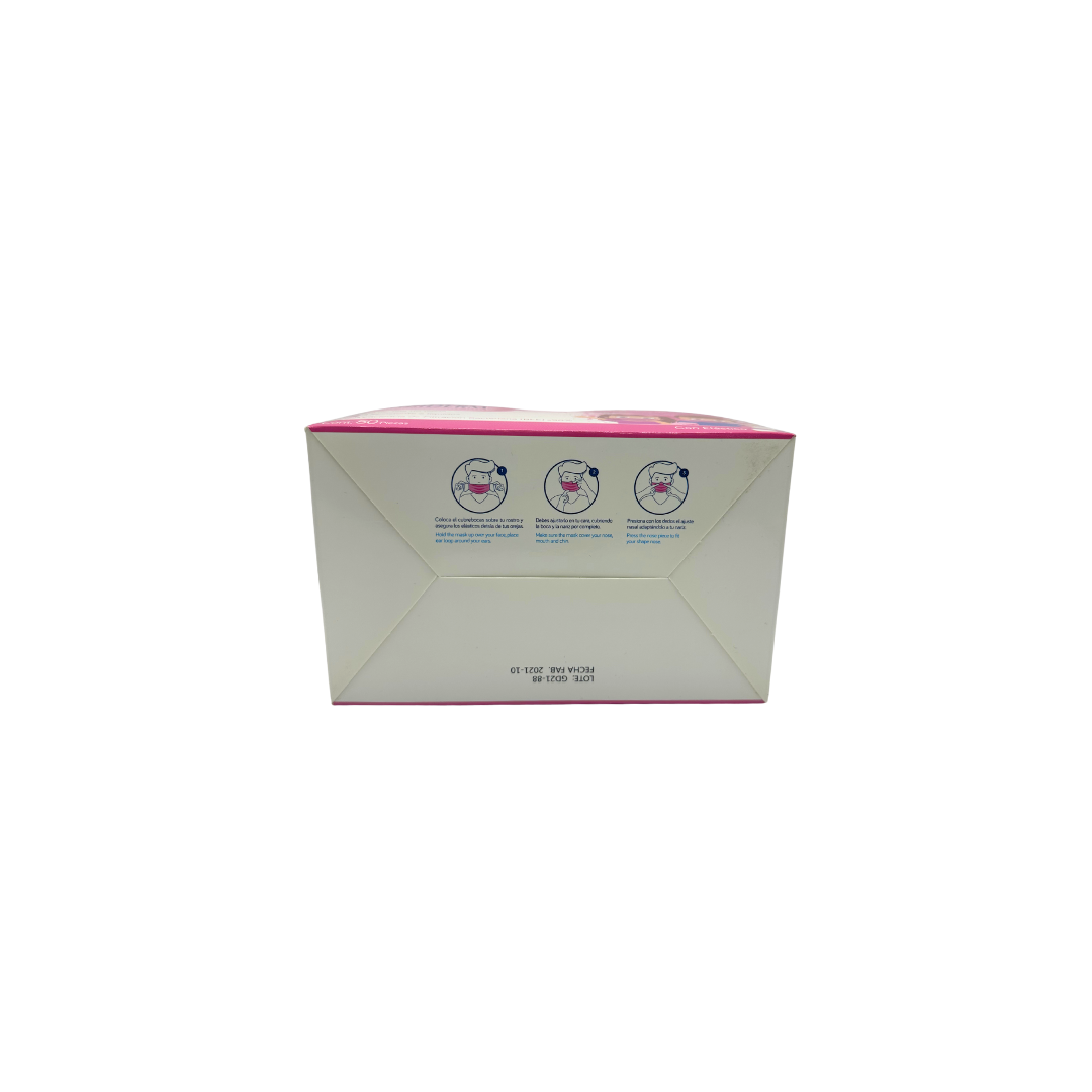 Cubrebocas Tricapa infantil rosa Ambiderm pack con 50 piezas
