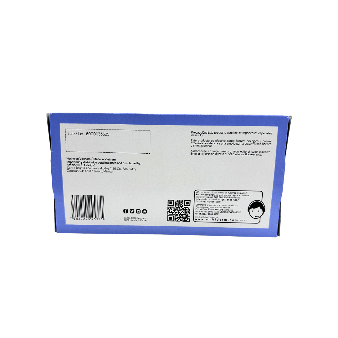 Guante de nitrilo azul Ambiderm talla chica caja con 100 piezas