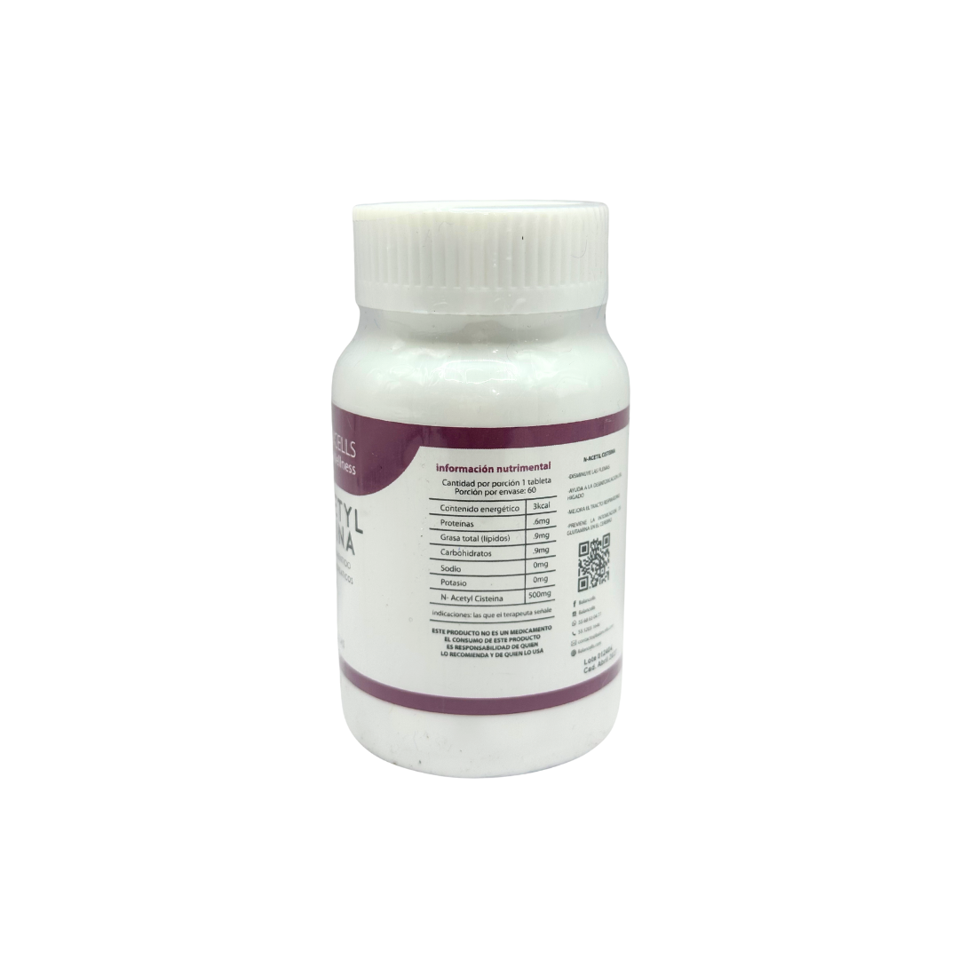 Suplemento alimenticio N-Acetyl Cisteina 500 mg de marca Balancells con 60 tabletas. La dosis sugerida es la que tu médico o terapeuta indique. El precio incluye impuestos, si requieres factura envía un correo a ventas@bacmedical.com.mx con el numero de la venta de tu pedido.